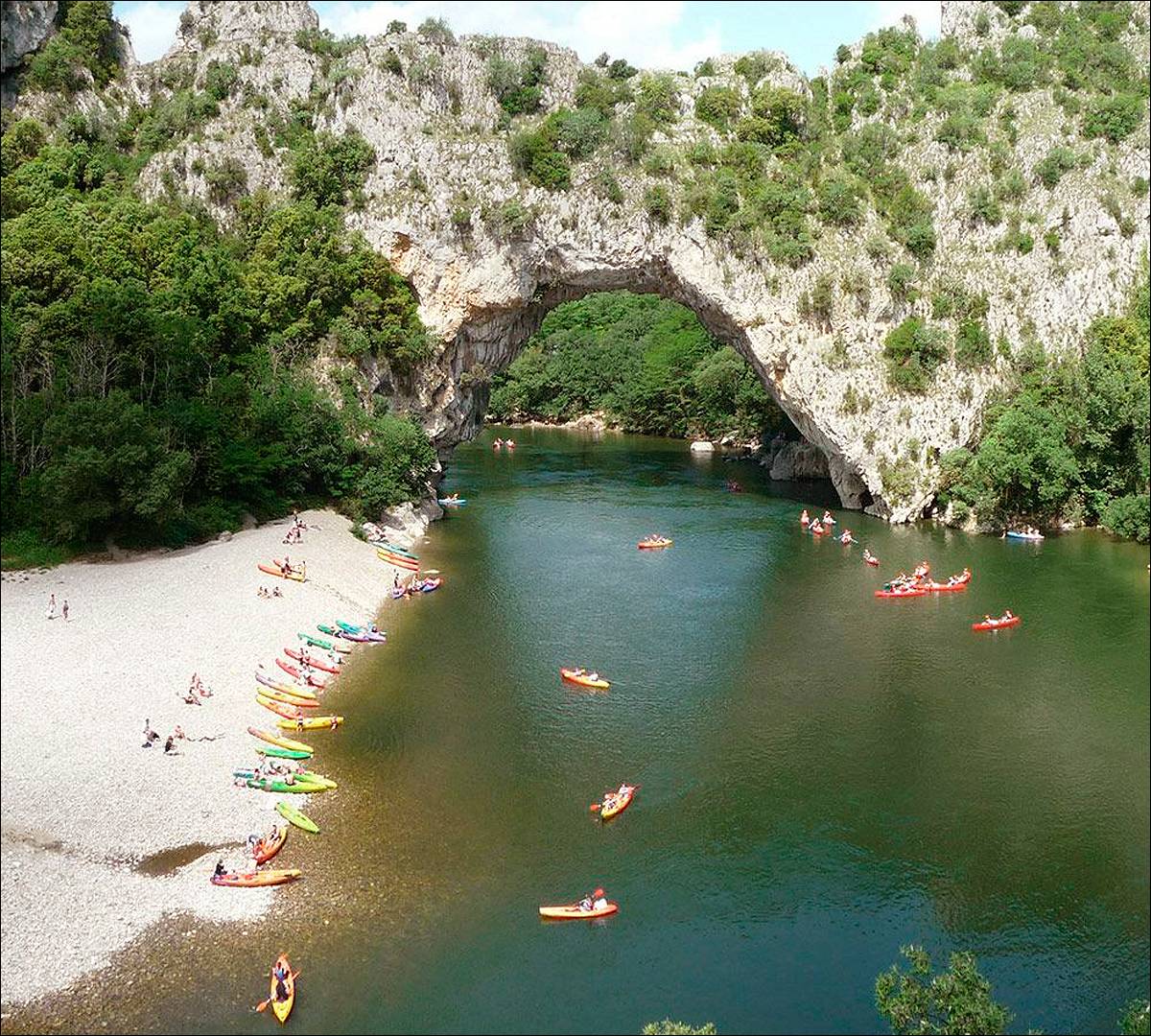 L’équipe de la Base Nautique du Pont d’Arc, location de canoë / kayak à Vallon Pont d’Arc, vous propose la descente de l’Ardèche sur différents parcours, selon votre envie et votre expérience :